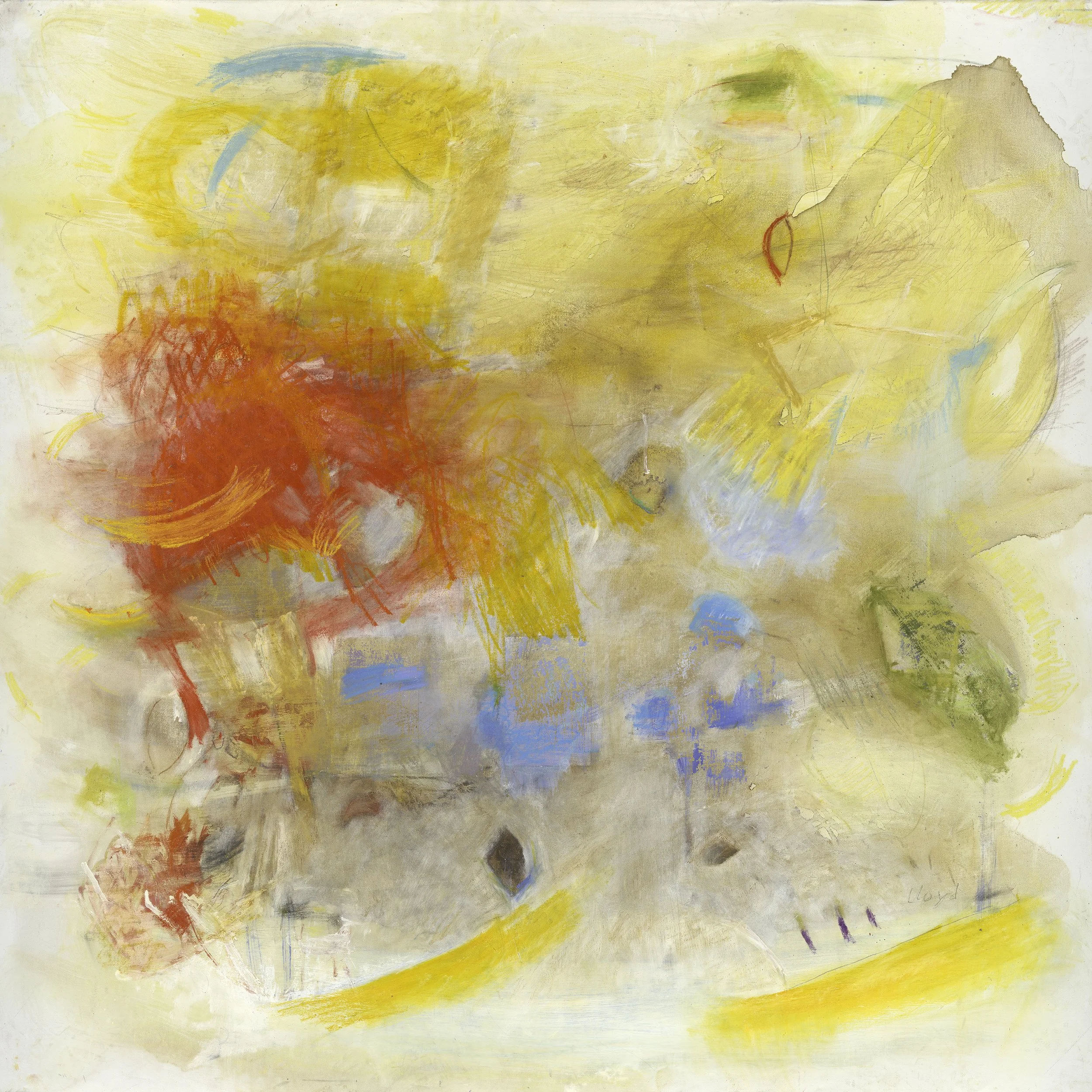 Floating Above a White Draped Room is an exhibition of abstract paintings and richly-layered mixed media works by Anne Lloyd that explore connections between states of being through a process guided by intuition.